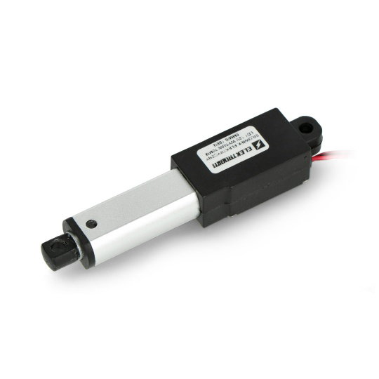 Kompakter elektrischer Antrieb. Es wird mit einer Spannung von 12 V betrieben. Das Gerät arbeitet mit einer Geschwindigkeit von 5 mm/s und ermöglicht das Heben von bis zu 18,8 kg ( 188 N ). Es hat die Dichtheitsklasse IP54 . Das Zylinderrohr besteht aus Aluminium. Montagehalterungen enthalten.