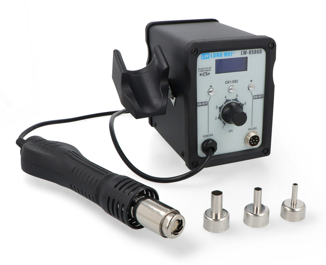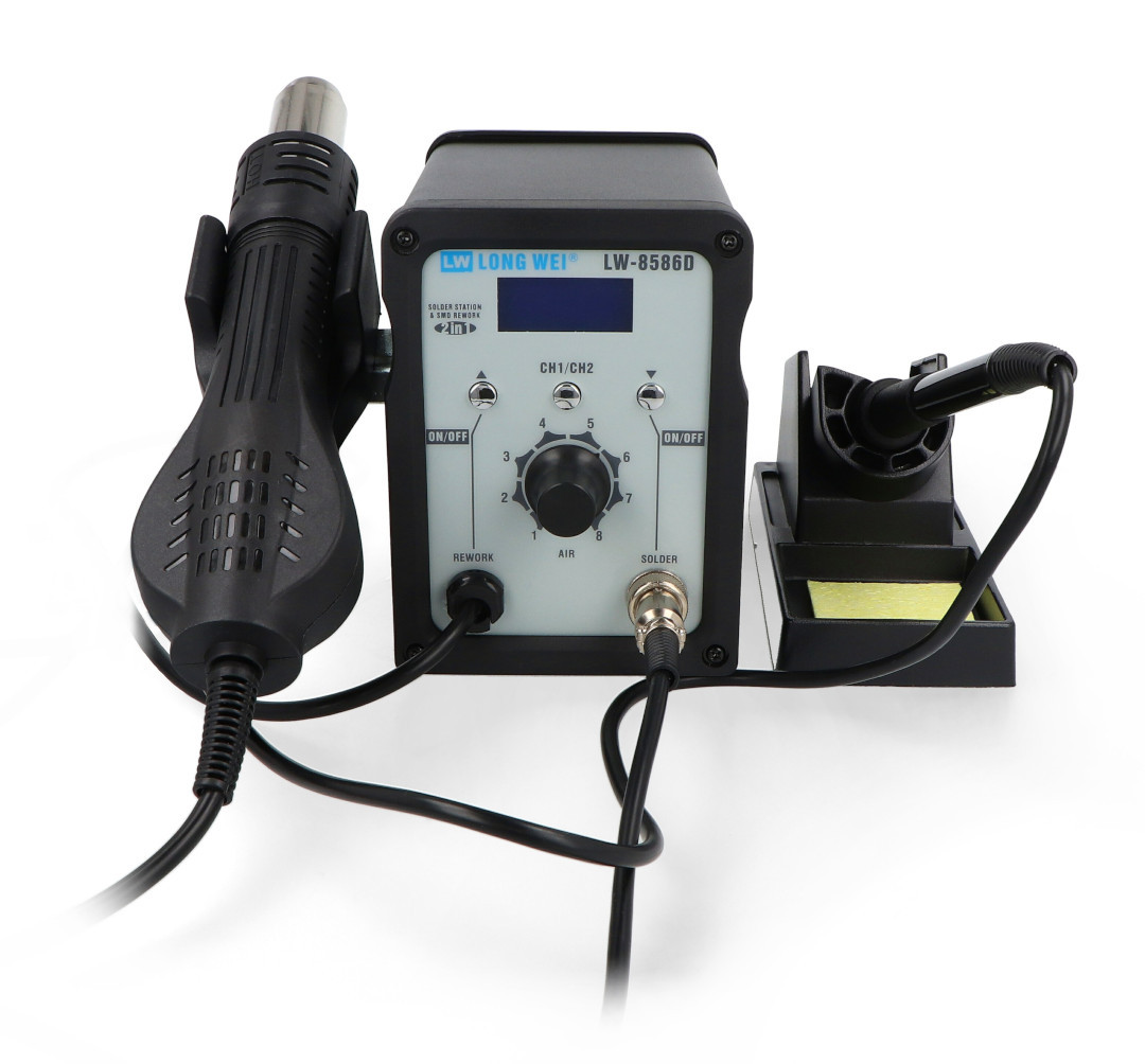 Produktbeschreibung: LongWei LW-8586D 2-in-1 Heißluft- und Grottenlötstation mit Lüfter in der Küvette - 700 W.