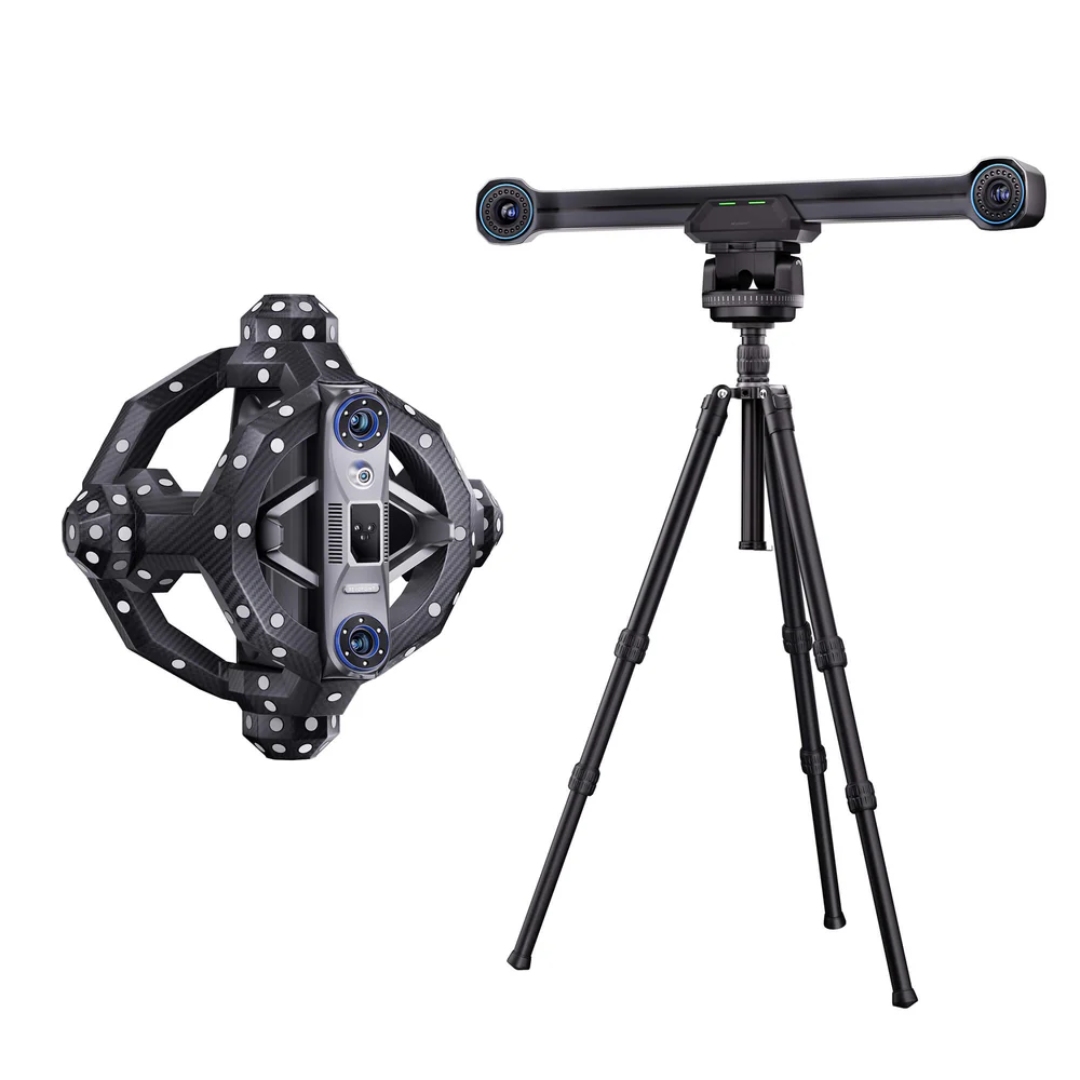 Der Trackit Standard Edition nutzt die innovative Dual-Mode-Blaulasertechnologie, die einen 30-Kreuzlinien-Modus für schnelles Oberflächenscannen und einen Einzellinien-Modus für die präzise Erfassung von tiefen Details wie Zahnrädern, Hohlräumen oder Löchern bietet. Der Scanner kann im optischen Tracking-Modus oder als eigenständiges Handgerät betrieben werden und ermöglicht so die einfache Erfassung schwer zugänglicher Bereiche. Das automatische Kalibrierungssystem reduziert die Einrichtungszeit erheblich und schließt menschliche Fehler aus, während die robuste Karbonkonstruktion die Datenkonsistenz für einen langfristigen Betrieb gewährleistet. Ausgestattet mit einer hochwertigen RGB-Kamera, reproduziert Trackit realistische Texturen, unterstützt Objekte von 10mm bis 6m und bietet eine volumetrische Genauigkeit von 0,02mm + 0,04mm x L(m). Das Gerät arbeitet mit den gängigen 3D-Formaten (PLY, STL, OBJ, 3MF, FBX) und ist ideal für Technik, Qualitätskontrolle, Design und Reverse Engineering.