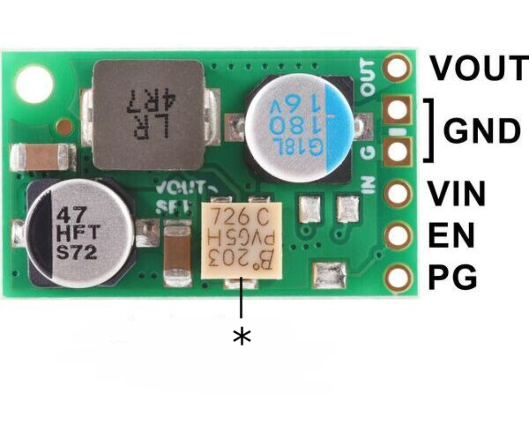 - VIN (Eingangsspannung) - Eingangsspannung im Bereich von 3,3 V bis 45 V. Hier wird die Eingangsspannung angeschlossen, die der Regler reduziert.