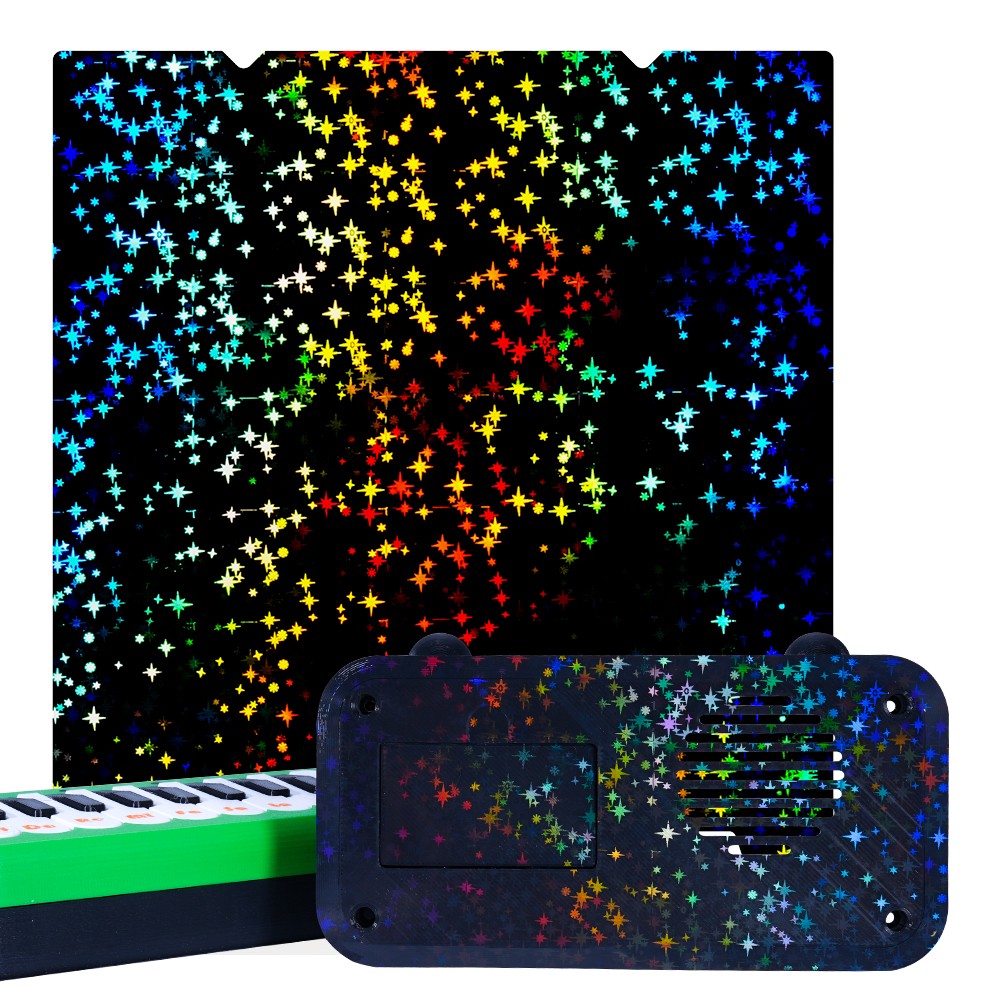 - Glänzende PET-Oberfläche - die PET-Oberfläche hält Temperaturen von bis zu 80°C stand und eignet sich daher ideal für den Druck mit Materialien wie PLA, PETG und TPU. Die regenbogenfarbig schimmernde Oberfläche verleiht den Drucken ein einzigartiges Aussehen.