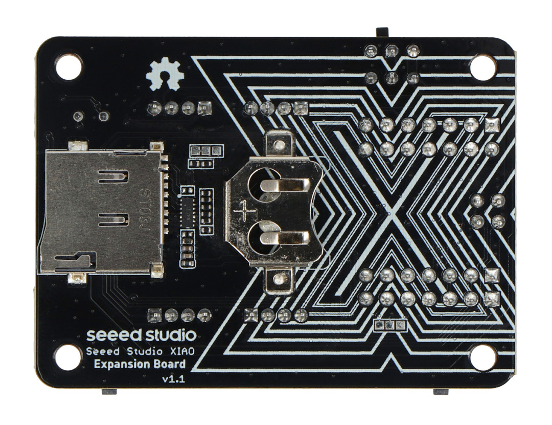 Board, das die Funktionalität des Seeeduino Xiao -Moduls erweitert. Es ermöglicht ein schnelleres und einfacheres Prototyping mit diesem Miniatur-Master-Modul. Auf dem Brett gibt es unter anderem Grove-Systemanschlüsse , 0,96" -OLED-Display , 2,0-mm-JST -Anschluss für Li-Pol-Batterieanschluss , RTC -Uhr, Platz für Knopfzellenbatterie und microSD-Kartensteckplatz . Das Set bestehend aus einer Erweiterungsplatine und dem Hauptmodul kann mit Python programmiert werden Sprache Alle Anschlüsse auf der Platine sind bereits herausgeführt und es ist kein zusätzliches Löten von Bauteilen erforderlich. Die Gesamtabmessungen der Erweiterungsplatine betragen 58 x 42,5 mm .