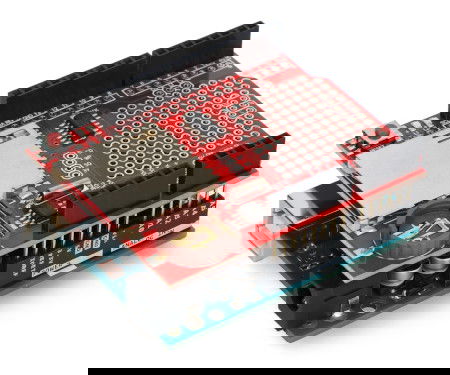 Overlay für Arduino mit RTC-Modul und SD-Speicherkartenslot. Es kann als Datenlogger verwendet werden und verfügt über einen Notstromversorgungsslot in Form einer CR1220 Rundbatterie. Die Schaltung erlaubt auch den Anschluss von zusätzlichen Sensoren und Erweiterungsmodulen. Sie funktioniert mit dem Arduino Uno Board und Derivaten.