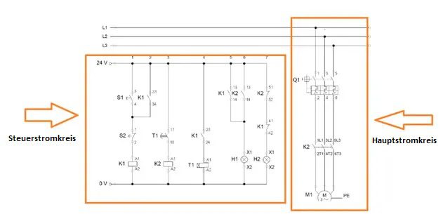 - Der Steuerkreis und der Stromkreis werden separat gezeichnet.