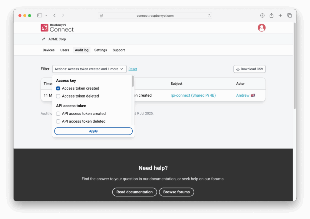 Das erweiterte Audit-Protokoll ist ab sofort für alle bestehenden Benutzer von Connect for Organisations verfügbar. Und wenn Sie gerade erst mit Connect für Unternehmen beginnen, können Sie eine vierwöchige kostenlose Testphase starten und den Fernzugriff auf Ihre Geräte für eine unbegrenzte Anzahl von Benutzern freigeben. Die Gebühren werden auf der Grundlage der maximalen Anzahl der registrierten Geräte berechnet.