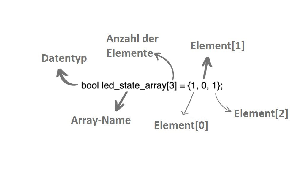 Das so deklarierte Array speichert drei Variablen vom Typ bool, deren Werte wir bereits zu Beginn angegeben haben.