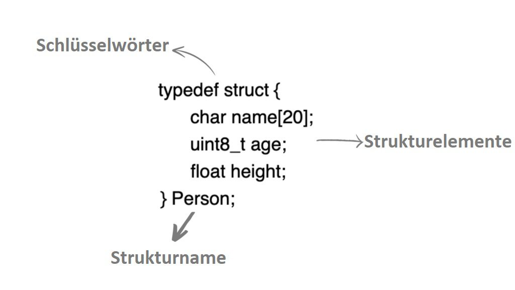 Anhand von einfachen Beispielen lernten wir Arrays kennen, die als kleinere oder größere Sammlungen von Variablen desselben Typs beschrieben werden können, die wir mit Hilfe von Indexen voneinander unterscheiden können. Eine Einschränkung bei dieser Art von Konstruktion ist jedoch der gerade erwähnte Datentyp. In Arrays haben wir nicht die Möglichkeit, mehrere verschiedene Variablen zu speichern, die ein etwas größeres Objekt beschreiben würden. Nehmen wir für dieses Beispiel einen Mann, der einen Namen, ein Alter und eine Größe hat. Der Vorname ist eine Zeichenfolge, das Alter ist eine ganze Zahl und die Größe ist eine Zahl mit einem Komma. Solche Daten können auf keinen Fall in einem Array untergebracht werden, wir müssten drei separate Variablen erstellen und das werden wir auch tun, aber wir werden sie in einer Struktur unterbringen. In der Sprache C gibt es eine bestimmte komplexe Konstruktion, die Struktur genannt wird. Sie ermöglicht es, verschiedene Arten von Variablen zu gruppieren und mit ihnen größere Objekte zu erstellen, die viele Attribute haben, wie der oben erwähnte Mensch. Im folgenden Beispiel werden wir eine solche Struktur zur Beschreibung einer Person erstellen, in der Informationen über ihren Namen, ihr Alter und ihre Größe gespeichert werden. Diese Daten werden, sobald sie gespeichert sind, an den Computer gesendet und auf dem Monitor der seriellen Schnittstelle angezeigt. Für dieses Programm habe ich ein weiteres Projekt mit dem Namen struct_test erstellt, aber bevor wir uns damit befassen, sollten wir uns die Deklaration der Struktur, die wir gleich verwenden werden, genauer ansehen.