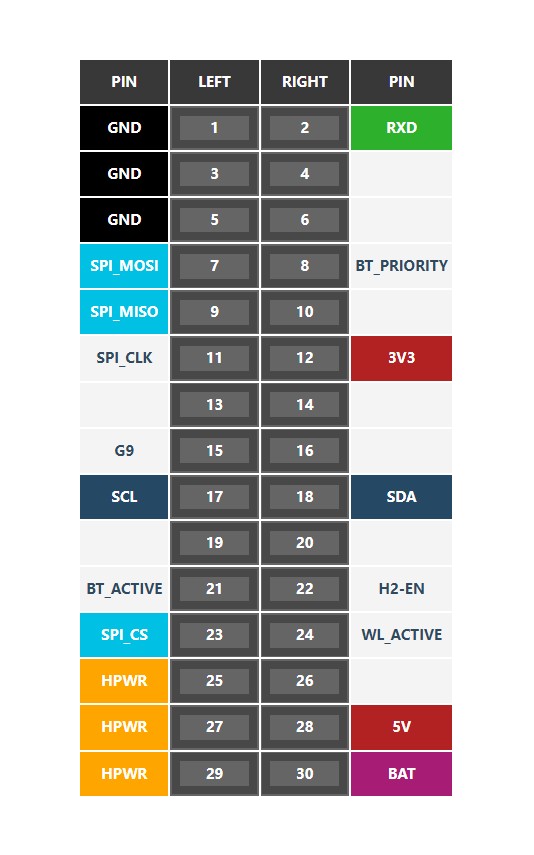Das Gateway H2 Modul verwendet den M-Bus und kann mit M5Stack Controllern (z.B. CoreS3, Core2, Fire v2.7) verwendet werden. Dank des DIP-Schalters ist es möglich, die Pinbelegung zu ändern - z.B. zwischen UART und SPI. Das Modul teilt sich Pins mit Bluetooth- und WiFi-Funktionen. Anschlüsse wie RXD, TXD, SPI_MOSI, SPI_MISO, SPI_CLK, SPI_CS und SDA/SCL sind auf dem 30-poligen Stecker verfügbar und erleichtern die Integration in Anwendungen, die eine drahtlose Kommunikation mit niedriger Spannung und eine gemeinsame Nutzung von Signalen mit dem Host erfordern.
