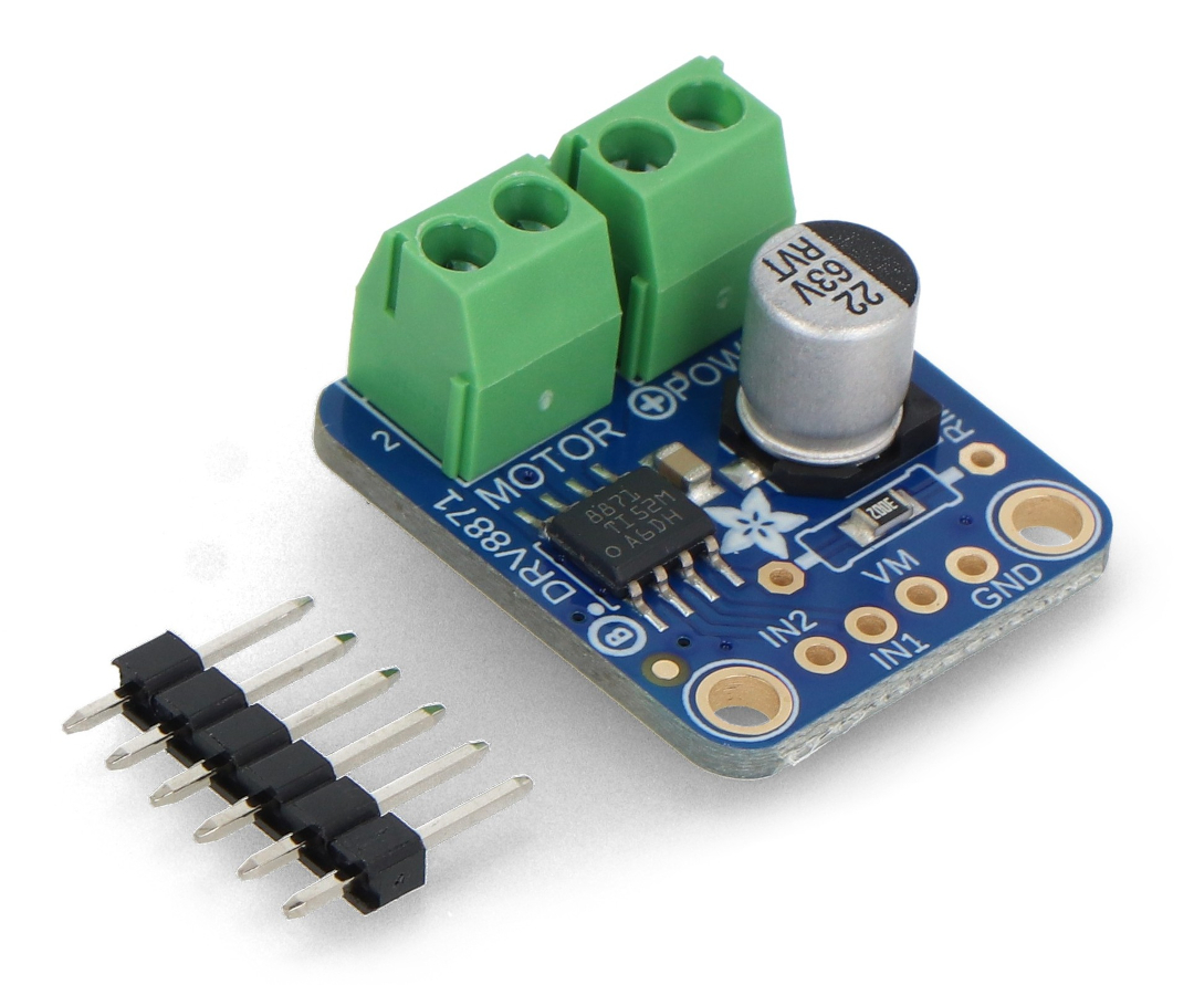 Dieses Modul auf Basis des DRV8871 ermöglicht die Steuerung eines einzelnen Gleichstrommotors. Der Motor kann mit bis zu 45 V betrieben werden und hat eine Dauerstromaufnahme von bis zu 2 A sowie eine kurzzeitige Spitzenstromaufnahme von bis zu 3,6 A (für einige Sekunden). Wir empfehlen, vor der Verwendung die Dokumentation zum DRV8871 zu lesen.