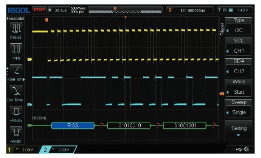 Das DS1102Z-E unterstützt die Dekodierung von RS232-, UART-, I2C- und SPI-Bussen. Dies ermöglicht die einfache Überwachung und Analyse der Kommunikation in komplexen eingebetteten Systemen.
