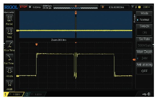 Die hohe Aktualisierungsrate der Signalform ermöglicht die schnelle Erkennung seltener und kurzlebiger Signalstörungen. Dadurch wird sichergestellt, dass jede Anomalie aufgezeichnet wird und leicht zu analysieren ist.