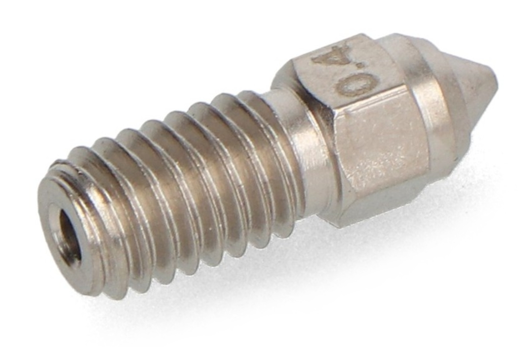 Die 0,4 mm Düse eignet sich perfekt für Projekte, bei denen es auf Detailgenauigkeit und Oberflächengüte ankommt. Sie ist ideal für technische Prototypen, funktionale und dekorative Modelle sowie für den Druck mit abrasiven Materialien wie kohlefaserverstärktem Filament. Dank der Verwendung von gehärtetem Stahl wird auch bei langen Druckläufen mit schwierigen Filamenten die Leistung des Bauteils nicht beeinträchtigt.