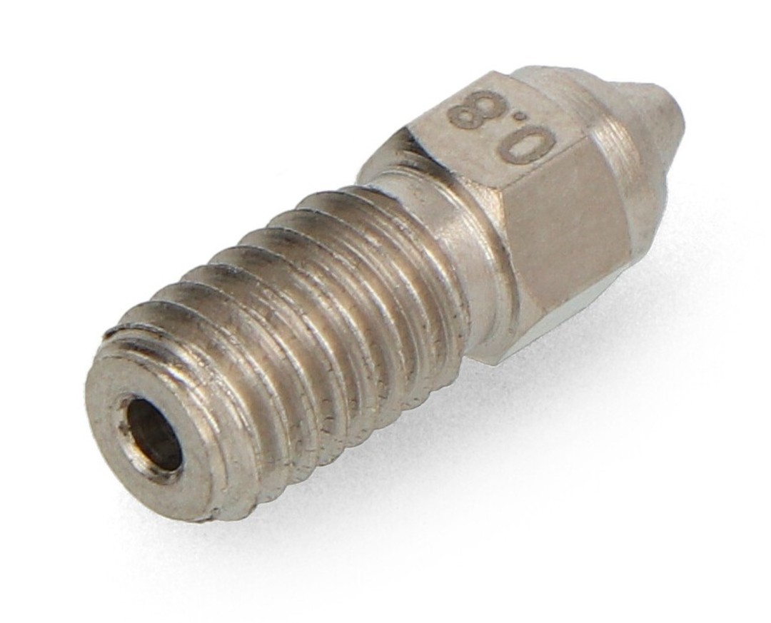 Die 0,8-mm-Düse ist ideal für den schnellen Druck von großen Modellen, Strukturbauteilen und technischen Teilen, die eine höhere Festigkeit erfordern. Sie eignet sich auch gut für Projekte mit abrasivem und speziellem Filament, bei denen die Langlebigkeit der Verbrauchskomponenten entscheidend ist. Sie ist eine praktische Lösung für alle, die die Geschwindigkeit ihres 3D-Druckers erhöhen und gleichzeitig eine gute Druckqualität und Wiederholbarkeit beibehalten möchten.