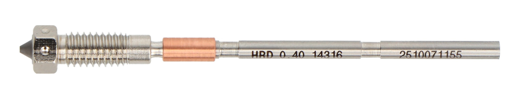 Die Prusa Hardened Nozzle ist die originale werkseitig gehärtete Düse mit 0,4 mm Durchmesser für Prusa 3D-Drucker - MK4, Mk4S, XL, CORE One, CORE One +, MK3.9 und MK3.9S. Dank der speziellen Nickelbeschichtung bietet die Düse eine erhöhte mechanische Beständigkeit und bessere thermische Eigenschaften, die einen stabilen und gleichmäßigen Materialfluss gewährleisten. Die Abriebfestigkeit macht das Produkt ideal für den Druck mit technischen und abrasiven Filamenten, wie z. B. Kohle- oder Glasfaser-Mischfilamenten. Die Düse kann bei Temperaturen von bis zu 300°C betrieben werden und ist somit mit einer Vielzahl von Materialien kompatibel.