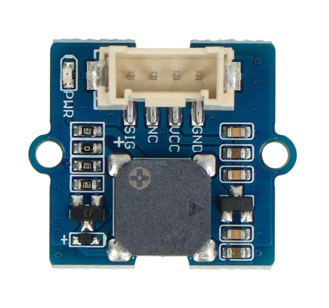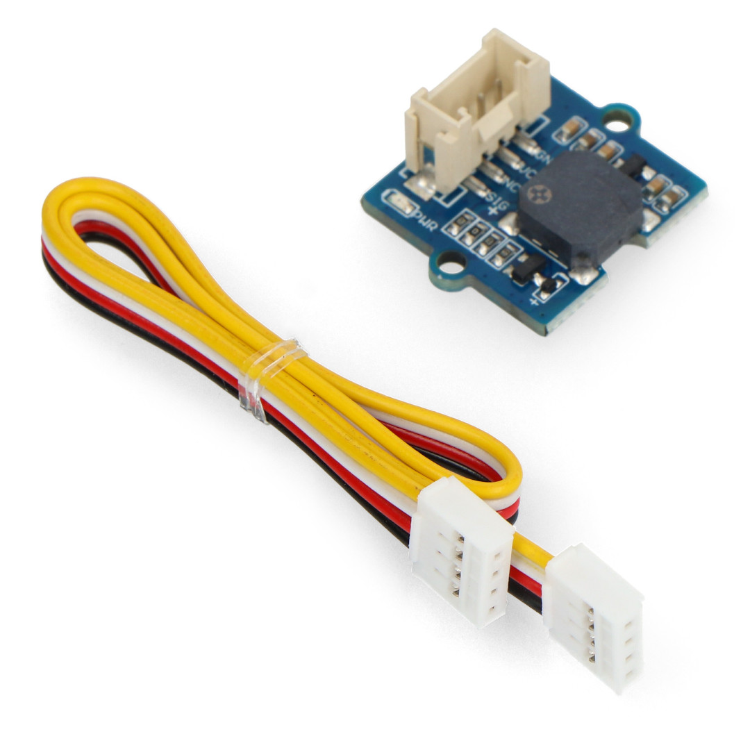 Ein Modul mit einem passiven Summer , mit dem Sie die Töne von Tönen ändern können, indem Sie die PWM-Frequenz anpassen . Der Summer kann als Alarmsirene verwendet werden, seine maximale Lautstärke beträgt 80 dB . Das Modul wird mit einer Spannung von 3 V bis 5 V versorgt. Die Platine verfügt über einen Grove -Anschluss zur einfachen Verbindung des Moduls mit dem Basis-Overlay.