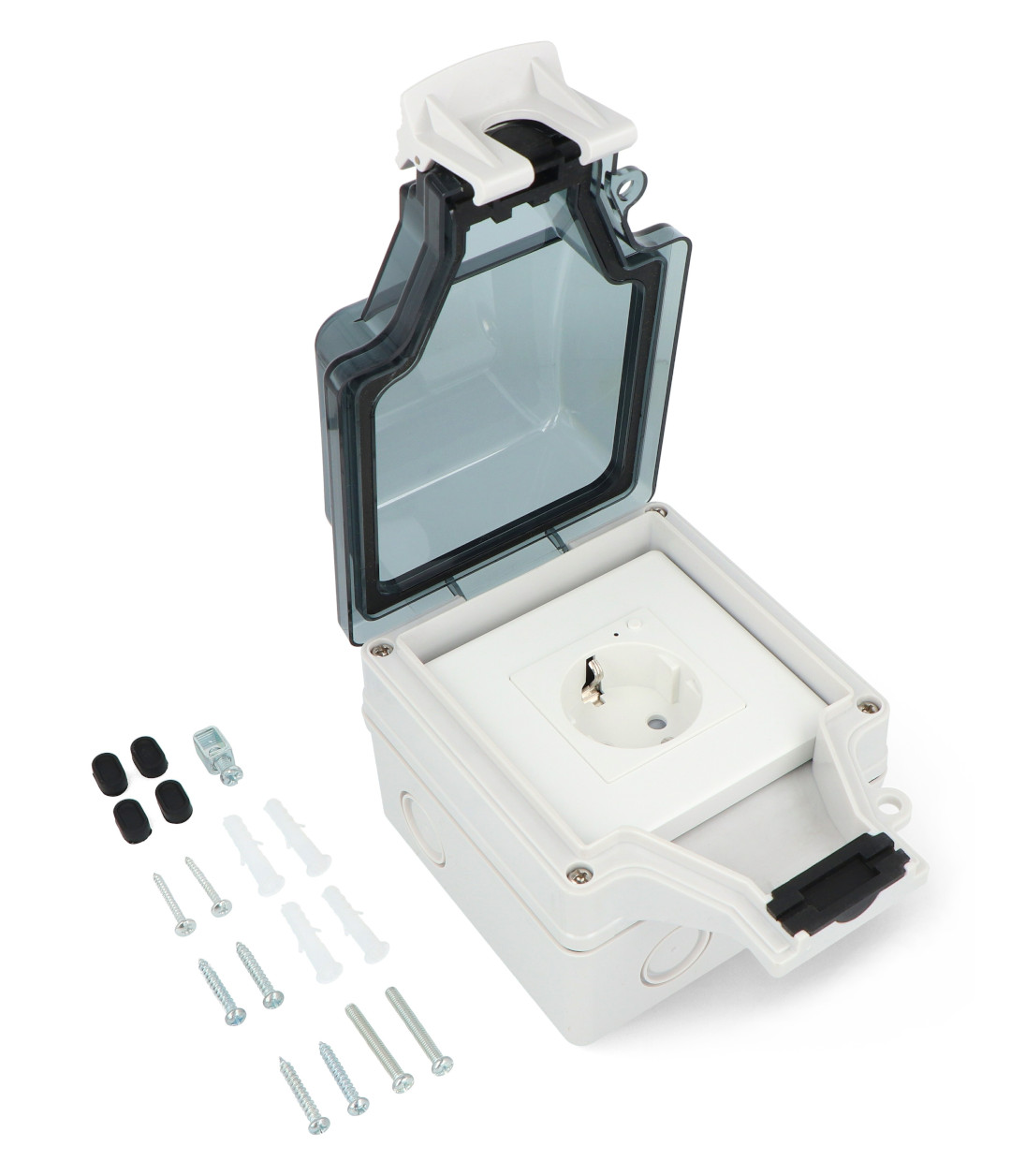 Die RTX-Außensteckdose ist eine praktische Lösung für die Automatisierung von Garten, Terrasse, Photovoltaik und anderen Außenanlagen.Besondere Merkmale