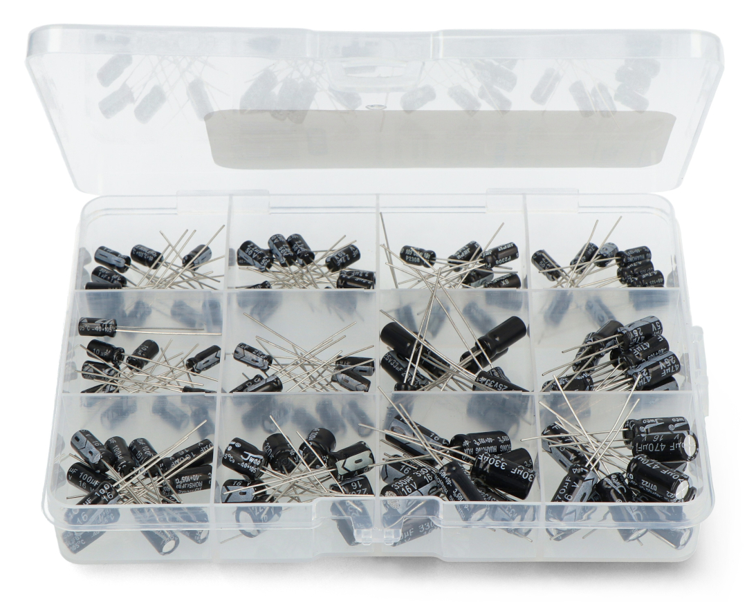 - Der Satz enthält 120 Elektrolytkondensatoren mit verschiedenen Kapazitäten und Spannungen