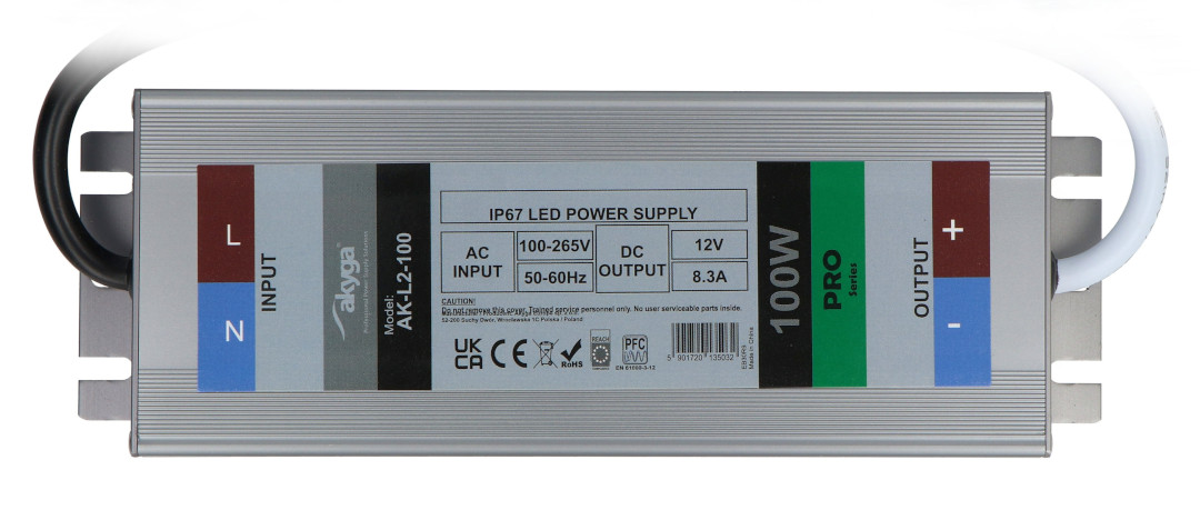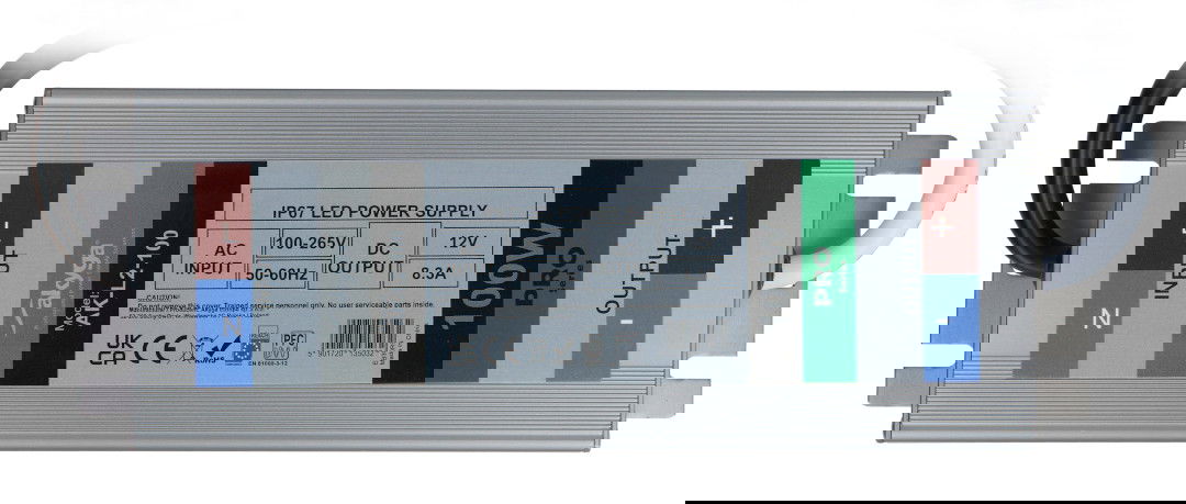 100-W -Netzteil zur Versorgung von auf LED-Technologie basierender Beleuchtung, z.B. Bänder, Glühbirnen, Panels, RGB-Controller und andere mit 12 V DC. Dank des IP67-Schutzes kann es sowohl außerhalb als auch innerhalb des Gebäudes eingesetzt werden. Die maximale Stromausbeute beträgt 8,3 A , womit Sie beispielsweise einen 20 m langen LED-Streifen mit einem Verbrauch von 4,8 W/m versorgen können. Neben der Stromversorgung von LED-Beleuchtung kann das Netzteil erfolgreich in industriellen Automatisierungssystemen, Maschinensteuerungen usw. eingesetzt werden.