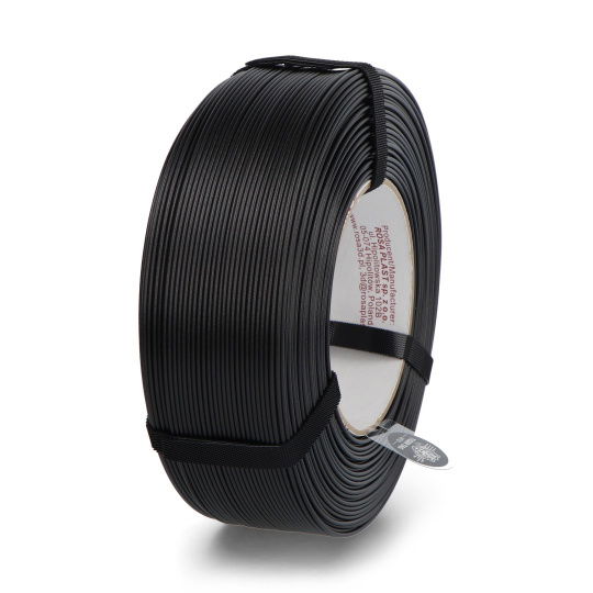PETG (mit Glykol dotiertes Polyethylenterephthalat) in schwarz . Es enthält einen Zusatz von Kohlenstofffasern, der es uns ermöglicht, Modelle mit einer satinierten Oberfläche und kaum sichtbaren Schichten zu drucken. Bei dünnwandigen Drucken ist ein leicht transparenter Effekt möglich. PETG CarbonLook-Filament zeichnet sich durch eine gute Haftung zwischen den Schichten und eine geringe Fadenbildung aus. Es wird in 3D-Druckern verwendet, die mit der FFF/FDM-Technologie arbeiten . Das Material ist auf einer Spule vorgespult und vakuumverpackt, eine abgedichtete Kammer ist nicht erforderlich. Die Packung enthält 1 kg Filament und hat einen Durchmesser von 1,75 mm.