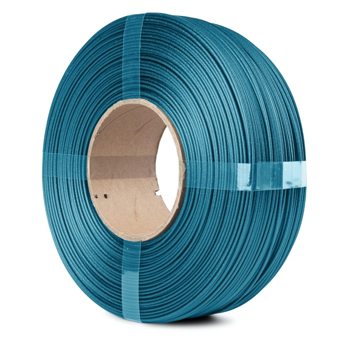 Spectrum's PETG CF Refill Filament für 3D Drucker in blau. Dieses Material ist eine Kombination aus bewährtem PETG mit einem 3%igen Zusatz von Carbonfasern, was zu einer deutlich höheren Härte, Steifigkeit und Abriebfestigkeit im Vergleich zu klassischem PETG führt. Es ist ein ideales Material für die Herstellung von robusten Gebrauchsteilen. Das Material wurde auf einen umweltfreundlichen Pappkern gewickelt, der vollständig mit den wiederverwendbaren Spulen von Bambu Lab kompatibel ist. Es ist für den Einsatz in 3D-Druckern konzipiert, die mit der FFF/FDM-Technologie arbeiten. Der Durchmesser des Filaments beträgt 1,75 mm und das Gewicht des Materials liegt bei 1 kg.