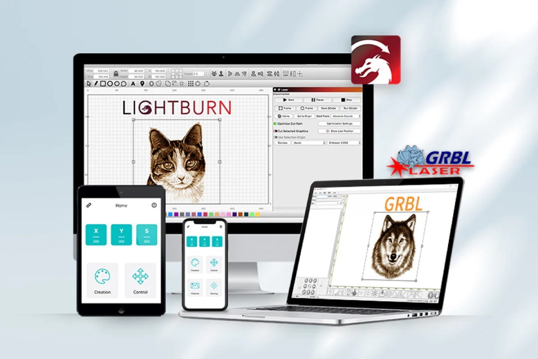 Der Plotter unterstützt kabelgebundene und kabellose Verbindungen, einschließlich USB, WiFi, lokales Netzwerk und TF-Karten. Das integrierte ESP32-Modul ermöglicht eine schnelle und stabile Übertragung von Entwürfen von einem Computer, Smartphone oder einer mobilen App. Der TTS-10 Pro arbeitet mit gängiger Software wie LightBurn und LaserGRBL zusammen und gewährleistet so die volle Kontrolle über den Gravurprozess.