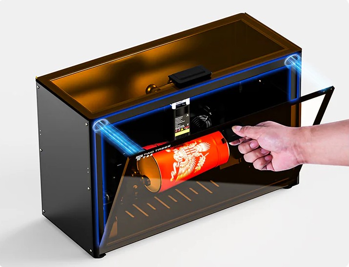 Bei diesem Modell ist für die Sicherheit und den Komfort des Anwenders gesorgt, dank eines Gehäuses, das vor Strahlung und Staub schützt. Das Gehäuse ist mit einer Rauch- und Staubabsaugung ausgestattet, die das Gravieren in einer sauberen Umgebung ermöglicht. Der Einsatz eines speziellen Luftfilters blockiert wirksam schädliches blaues Licht und Rauch, die bei der Materialbearbeitung entstehen, und sorgt für Sicherheit und bessere Sicht. Dies ermöglicht das Gravieren in einer geschlossenen Umgebung, ohne dass man sich um die Luftverschmutzung sorgen muss.