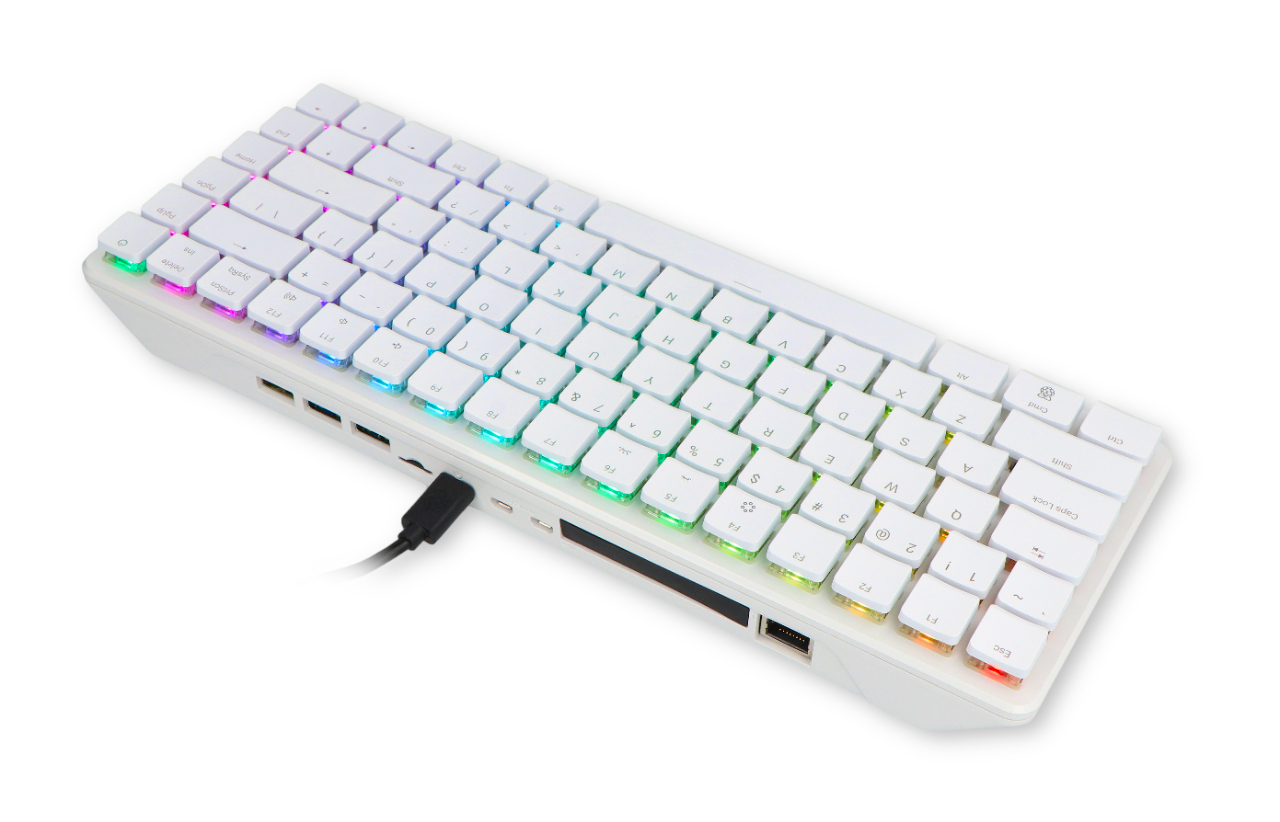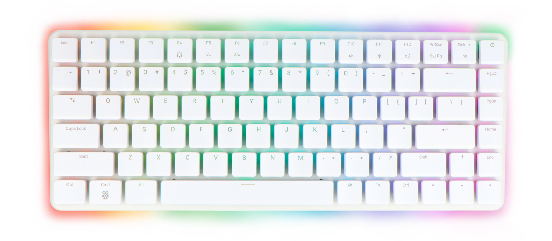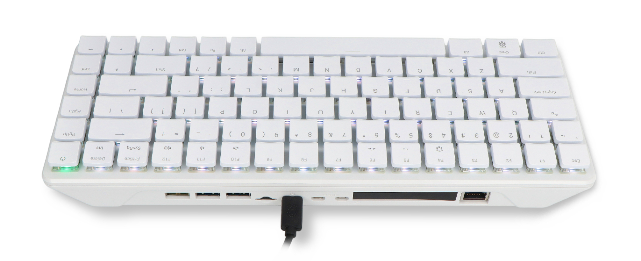 Der Raspberry Pi 500+ ersetzt die Folientastatur des RPi 500-Modells durch eine hochwertige mechanische Tastatur mit individuell ansteuerbaren RGB-LEDs.