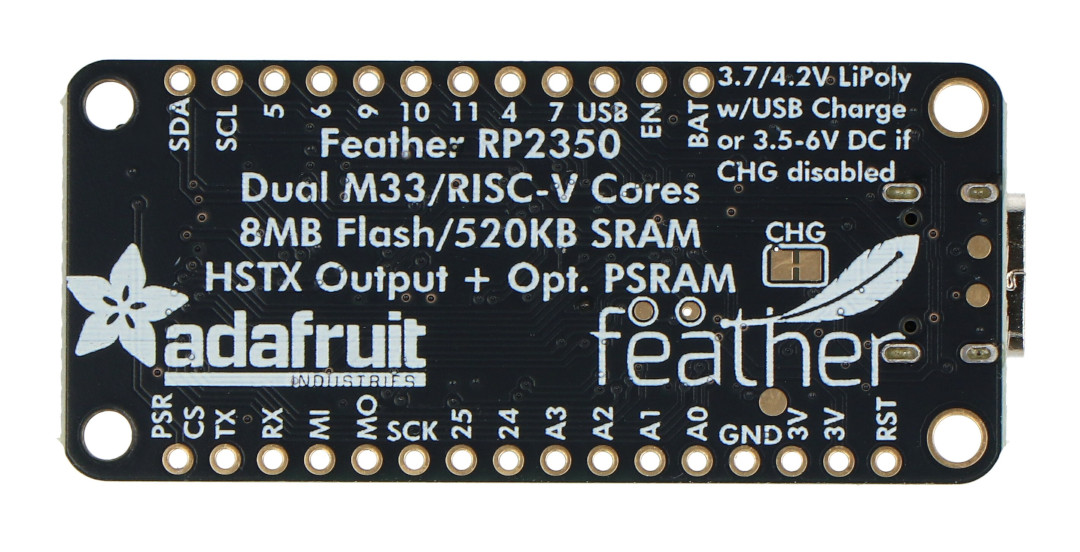 Produktbeschreibung: Feather RP2350 Mikrocontroller-Board mit RP2350 Mikrocontroller und HSTX-Anschluss - Adafruit 6000