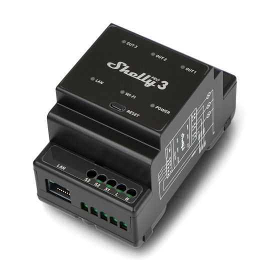 Shelly Pro 3 ist ein professionelles 3-Kanal-Relais für die DIN-Schiene. Das Gerät unterstützt einen maximalen Strom von bis zu 48 A, bis zu 16 A pro Ausgang. Die Konnektivität mit WLAN, LAN und Bluetooth macht es zu einem universellen Relais für die Haus- oder Gebäudeautomation. Ausgestattet mit potenzialfreien Kontakten ist eine hohe Flexibilität bei der Handhabung von Spannungen und eine breite Palette von Möglichkeiten in der Hausautomation möglich. Das Relais ist mit Skripting-Funktionen ausgestattet, die es ermöglichen, kundenspezifische Automatisierungsszenen auf der Grundlage verschiedener Ereignisse, wie z. B. der Wettervorhersage, einzustellen.