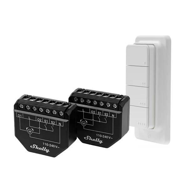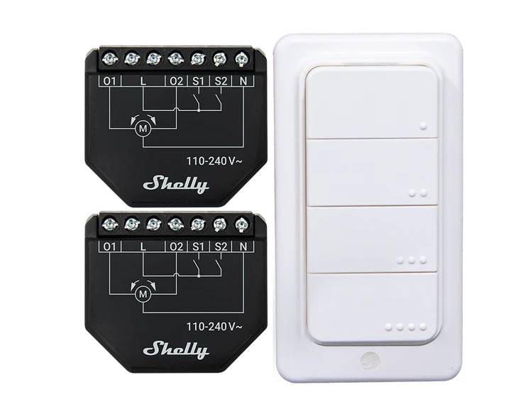 Produktbeschreibung: Shelly Shutter + BLU RC Button 4 - 2x Rollladensteuerung + Fernbedienung für Aktion und Szenenaktivierung - WiFi / Bluetooth