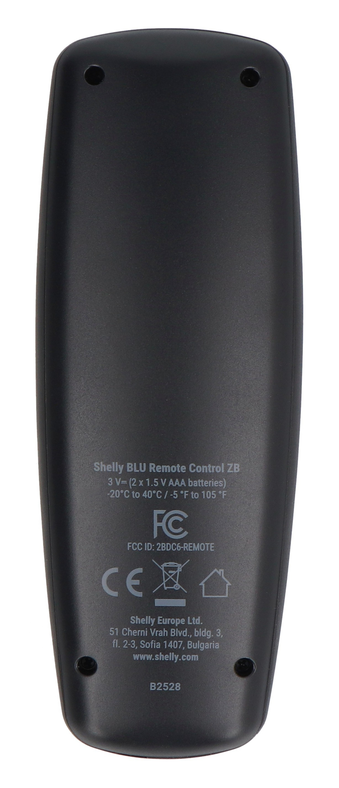 Produktbeschreibung: Shelly BLU Fernbedienung ZB – Smart-Home-Fernbedienung – ZigBee/Bluetooth – Schwarz