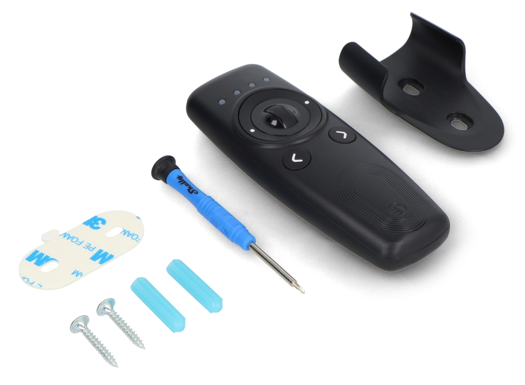 Die Shelly BLU Fernbedienung ZB ist eine kompakte Fernbedienung für die komfortable Steuerung Ihres Smart-Home- Systems. Dank Bluetooth Low Energy und ZigBee ist sie mit verschiedenen Komponenten der Gebäudeautomation kompatibel. Mit der Fernbedienung bedienen Sie Beleuchtung, Jalousien, Relais und das Garagentor schnell und intuitiv. Sie verfügt über vier Steuerkanäle, zwei Ringtasten, Navigationstasten und einen Präzisionsdrehknopf . Ein integrierter Beschleunigungssensor ermöglicht die Gestensteuerung , während LED-Anzeigen und ein Summer direktes Feedback zu Ihren Aktionen geben. Die Beacon-Funktion erleichtert das Auffinden der Fernbedienung, falls Sie sie einmal verlegt haben.