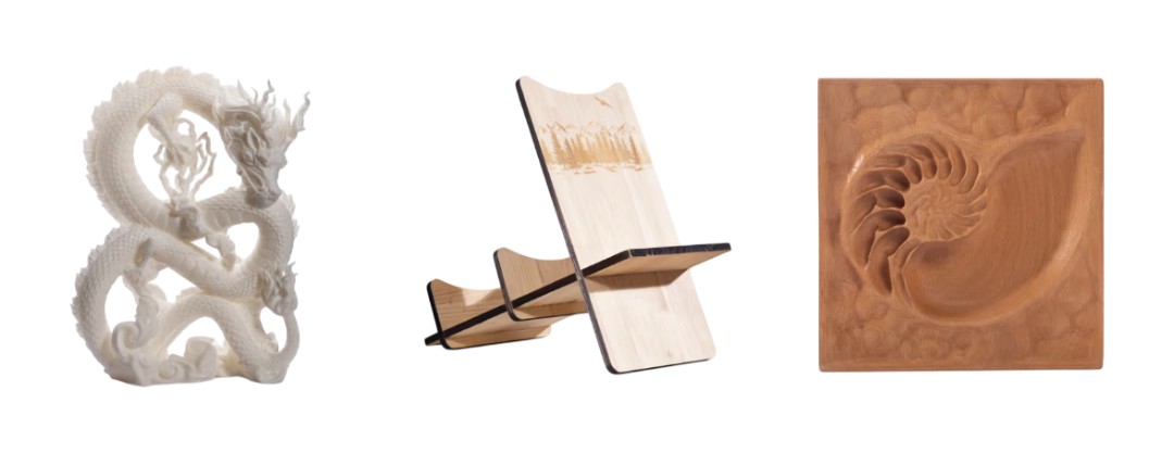 | Unterstützte Materialien: | Hartholz (Buche, Nussbaum), Weichholz, HDF, MDF, Sperrholz, Jade, Kohlefaser, Acryl, Epoxidharzplatten, PCBs |