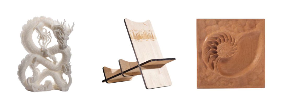 Der Snapmaker Artisan ist mit einem fortschrittlichen 200-W-CNC-Modul ausgestattet, das präzises Fräsen und Schnitzen in einer Vielzahl von Materialien ermöglicht, einschließlich sogenannter Harthölzer (z. B. Buche, Nussbaum). Das CNC-Modul des Snapmaker Artisan wurde im Vergleich zum Snapmaker 2.0 erheblich verbessert: Die Leistung wurde um 300 % und die Spindeldrehzahl um 50 % erhöht, so dass es jetzt 6-mal schneller ist.