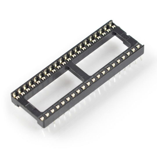 Der Sockel ermöglicht eine sehr einfache und sichere (sowohl für den Chip selbst als auch für die Leiterplatte) Montage und Demontage von THT-ICs. Der Vorgang kann viele Male wiederholt werden, ohne dass die Gefahr besteht, dass eines der Bauteile beschädigt wird - deshalb ist der Sockel so weit verbreitet, z. B. in Evaluierungskits, bei denen häufig ein getesteter Chip durch einen anderen oder ein anderes Modell ersetzt werden muss. Der Pin-Abstand des Bauteils ist identisch mit dem des originalen DIP40-Gehäuses, so dass der Sockel direkt in die für den IC vorgesehene Position eingelötet werden kann.