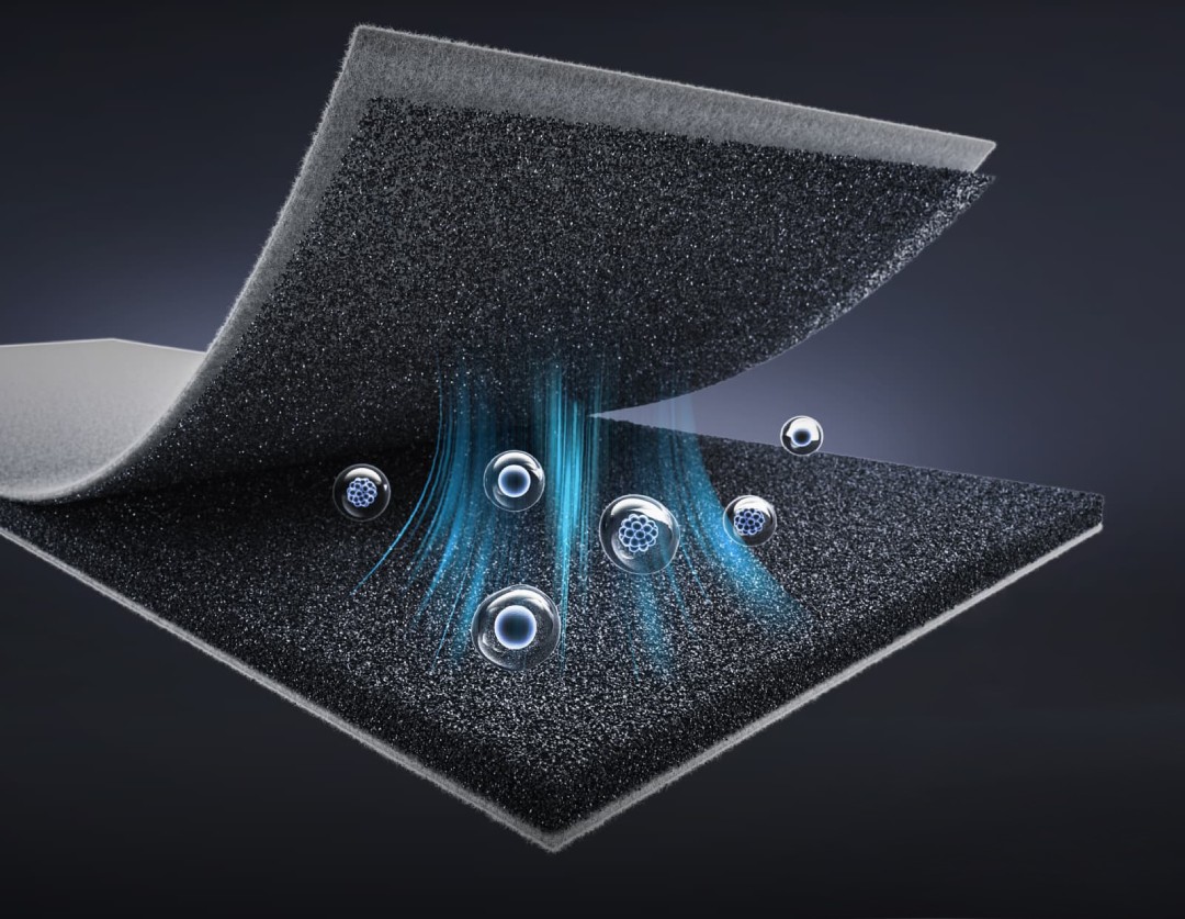 Das dichte Netz mit bis zu 400-mal kleineren Kohlenstoffpartikeln als Standard erhöht die Absorption von unangenehmen Gerüchen.