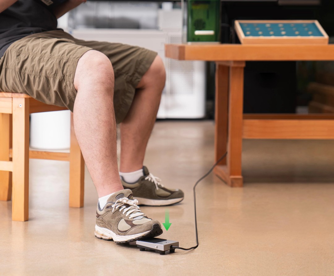 Das Fußpedal funktioniert analog zur xTool F1-Handtaste und ermöglicht es Ihnen, den Graviervorgang mit dem Fuß zu steuern. Das Arbeiten damit ist sanft und natürlich: