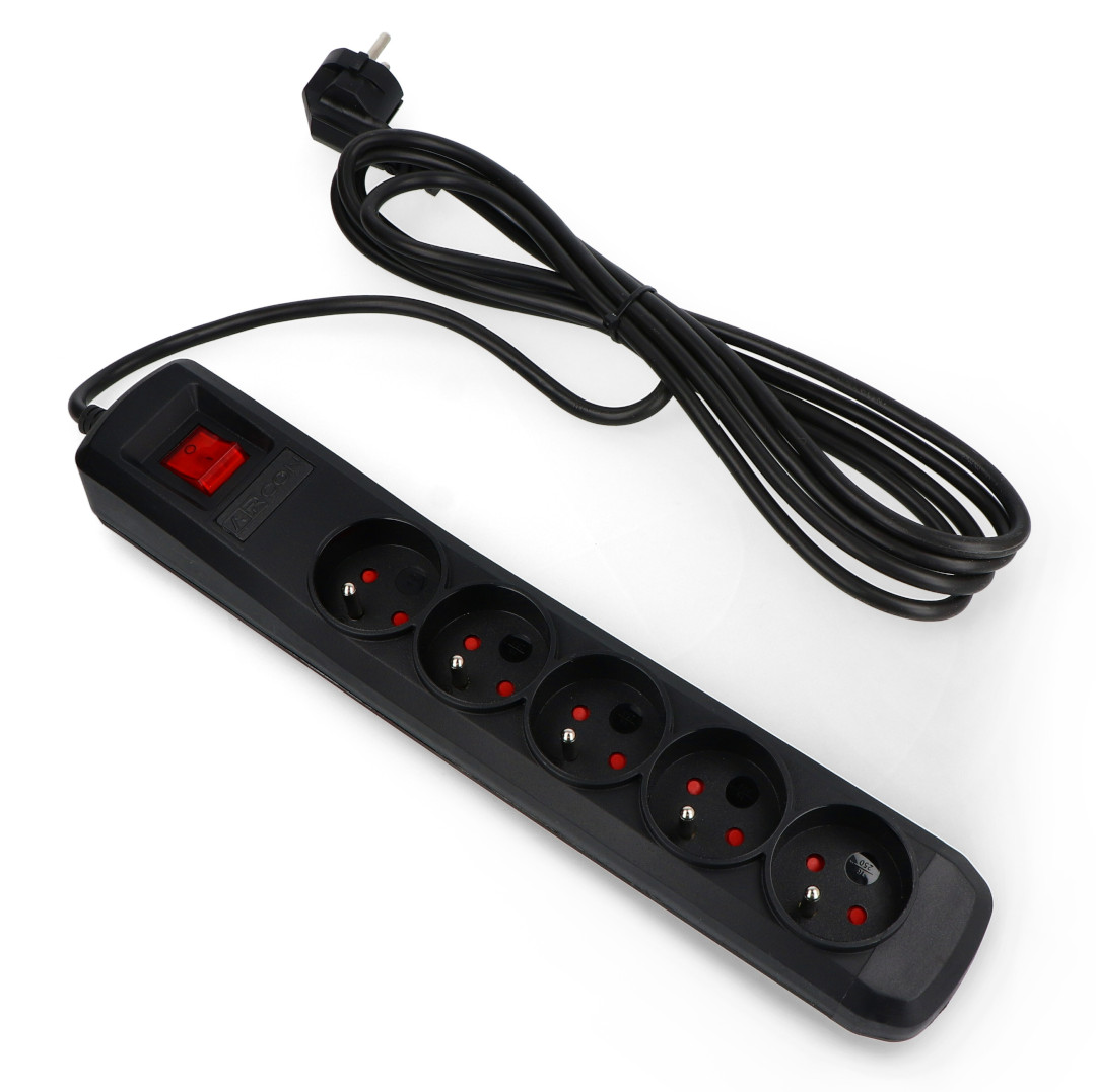 DieseSteckdosenleiste in Schwarz ist mit 5 geerdeten Steckdosen , einem beleuchteten Hauptschalter und einem Entstörfilter ausgestattet. Das Produkt wird mit 250 V Netzspannung versorgt. Das Kabel der Steckdosenleiste ist 3 m lang. Die Steckdosenleiste ist universell einsetzbar und kann für die Stromversorgung verschiedener Arten von elektronischen Geräten verwendet werden. Das Produkt ist gegen Kurzschlüsse und gefährliche Überspannungen geschützt.