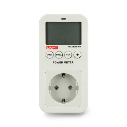 Ein Messgerät, mit dem wir den Energieverbrauch aller Geräte, die in einem Haushalt, Büro oder anderen Arbeitsplatz verwendet werden, einfach kontrollieren können. Das Gerät kann mit einer Spannung von 100 bis 260 V betrieben werden. Die maximale Stromausbeute des Zählers UT230B-EU beträgt 16 A. Mit dem Messgerät können Sie Spannung und Strom messen, Leistung und Leistungsfaktor messen, die Menge und die geschätzten Kosten der verbrauchten Energie sowie die dadurch verursachten CO 2 -Emissionen bestimmen. Das Messgerät ist außerdem mit einer Überlastwarnfunktion ausgestattet. Wenn 17,6 A für etwa 10 Sekunden überschritten werden, beginnt die Stromversorgungsanzeige zu blinken und das Display zeigt das Wort „OL“ und ein Symbol mit einem Ausrufezeichen . Trennen Sie in diesem Fall das Gerät von der Steckdose.