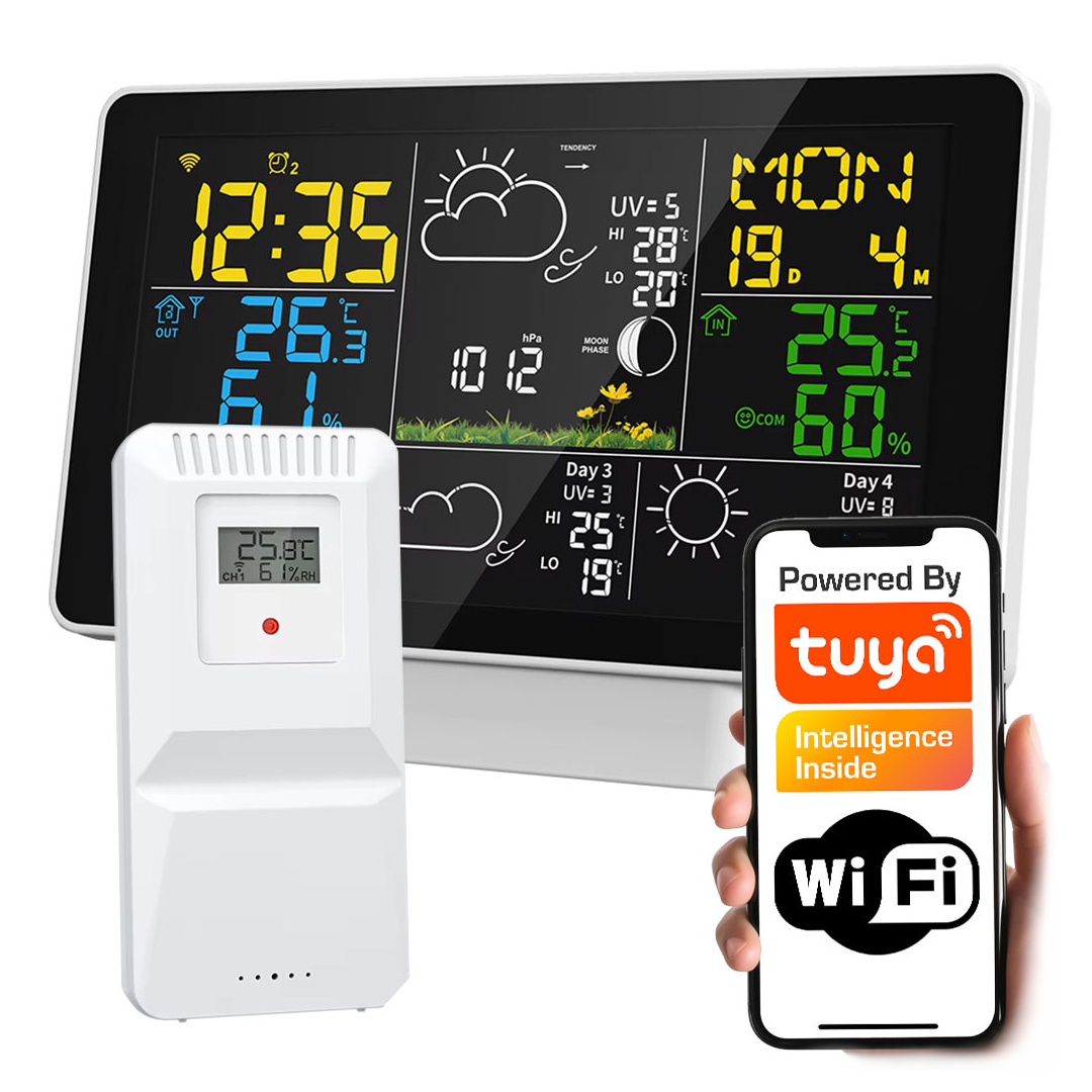 Produktbeschreibung: Tuya - Wetterstation mit externem Temperatur- und Feuchtigkeitssensor T886 - HD LCD Bildschirm - WiFi