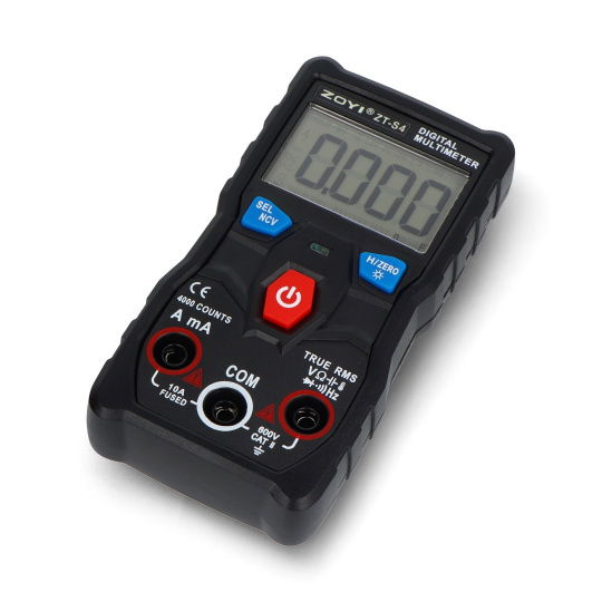 Das ZOYI ZT-S4 ist ein hochmodernes Digitalmultimeter, das das zu messende Signal automatisch erkennt und den passenden Bereich und die entsprechende Messfunktion auswählt und eine äußerst intuitive Bedienung bietet. Das Gerät ermöglicht die Messung von Spannung, Strom, Widerstand, Kapazität, Frequenz und Temperatur sowie die Prüfung von Dioden und Schaltkreisen auf Durchgang. Die verwendete True RMS-Technologie sorgt für genaue Messwerte auch bei verzerrten Signalen. Zusätzliche Funktionen wie NCV (berührungslose Spannungserkennung), LED-Taschenlampe, hintergrundbeleuchtetes Display, Data Hold oder automatische Abschaltung erhöhen den Komfort und die Sicherheit bei der Anwendung. Dank seiner kompakten Größe und seines geringen Gewichts ist das ZT-S4 das ideale Werkzeug für die tägliche Arbeit zu Hause, in der Werkstatt oder auf dem Feld.