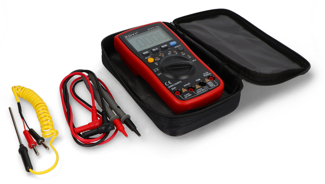 Das Multimeter ZT-219 findet sowohl in der Werkstatt des Elektronikers als auch bei der Wartung von Haushaltsgeräten, Elektroinstallationen oder Laborarbeiten Verwendung. Es ermöglicht die Prüfung digitaler Schaltungen, die Messung von Stromversorgungsparametern, die Überprüfung des Zustands von Bauteilen und die schnelle Erkennung von Fehlern in Schaltkreisen. Die Temperaturmessung mit einem Thermoelement erweist sich als nützlich für die Thermodiagnose, und die NCV-Funktion gewährleistet die sichere Ortung von stromführenden Leitungen. Eine Transporttasche, ein Kabelsatz und ein Temperaturfühler sind im Lieferumfang enthalten, so dass der ZT-219 sofort einsatzbereit ist.