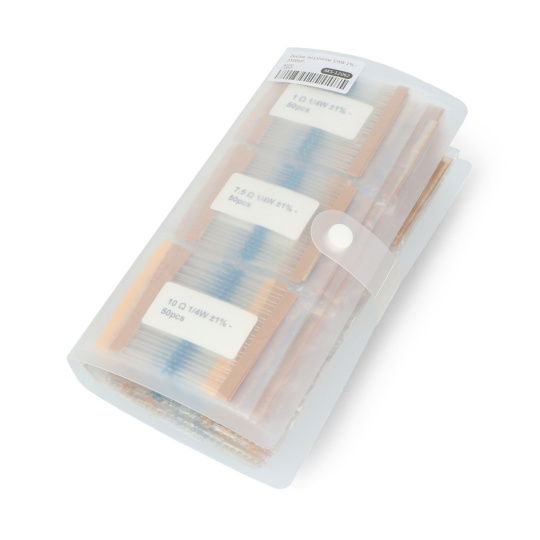 Das angebotene Set enthält metallisierte Widerstände, die mit einer Toleranz von ±1% hergestellt werden. Damit eignen sie sich perfekt für Anwendungen, bei denen klassische Kohlewiderstände mit einer Toleranz von ±5% aufgrund strengerer Anforderungen an die Genauigkeit des elektronischen Schaltungsdesigns nicht verwendet werden können.