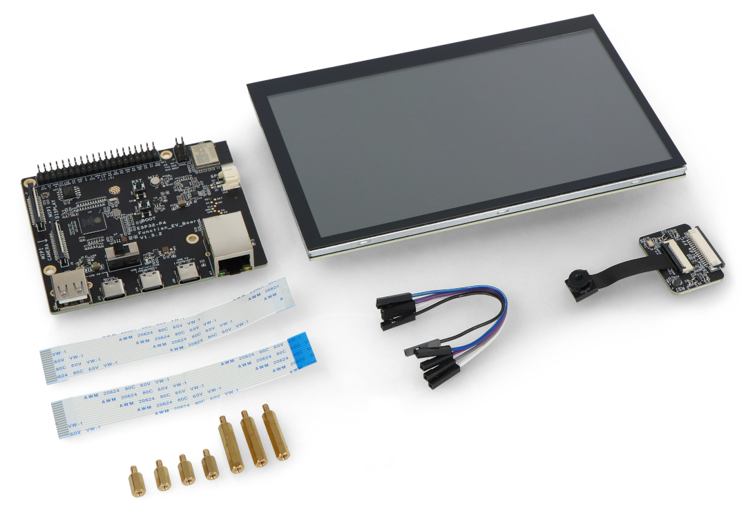 Das ESP32-P4-Function-EV-Board von Espressif ist eine fortschrittliche Entwicklungsplattform für IoT-, Multimedia- und Smart Device-Projekte. Es ist mit dem ESP32-P4 Chip ausgestattet, der hohe Leistung und Energieeffizienz bietet. Das ESP32-C6-MINI-1 Modul bietet zuverlässige drahtlose Verbindungen über WiFi 6 und Bluetooth 5.0 und ermöglicht so eine breite Palette von Anwendungen. Das Board unterstützt USB 2.0, MIPI-CSI / DSI und H264Hardware-Encoder, was es zu einer guten Wahl für Video- und Audiosysteme macht. Mit 55 GPIO-Pins können Sie problemlos zusätzliche Module und Sensoren anschließen. Durch das eingebaute Mikrofon, den Audioverstärker und den Lautsprecheranschluss eignet sich das Board auch für Sprach- und Audioerkennungsprojekte. Ein kapazitiver 7-Zoll-Touchscreen mit einer Auflösung von 1024 x 600 px und eine 2-MPx-Kamera mit MIPI-CSI-Schnittstelle ermöglichen die Realisierung von visuellen Projekten wie Video-Gegensprechanlagen und Überwachungssystemen. Ein umfangreiches Set an Schnittstellen macht das ESP32-P4-Function-EV-Board zur perfekten Basis für moderne Netzwerk- und KI-Anwendungen.