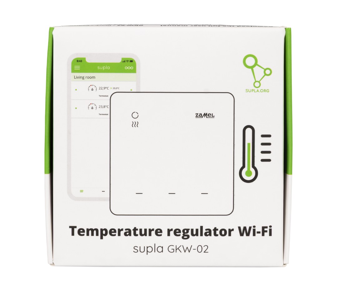 GKW-02 von Zamel Supla ist ein moderner WiFi-Temperaturregler, mit dem Sie Heizgeräte wie Heizleisten, Ventile oder Heizmatten nach dem Anbringen von Zusatzelementen bequem steuern können. Dank der Integrationsfunktion mit der Supla-App können Sie auf einfache Weise die gewünschten Temperaturen einstellen, Heizpläne erstellen und den Temperaturverlauf überwachen. Der Regler ist mit drei Touch-Feldern ausgestattet , die als Auslöser für andere Aktionen im Smart Home System dienen können. Dank seines ästhetisch ansprechenden Gehäuses passt das Gerät perfekt in eine Vielzahl von Innenräumen.