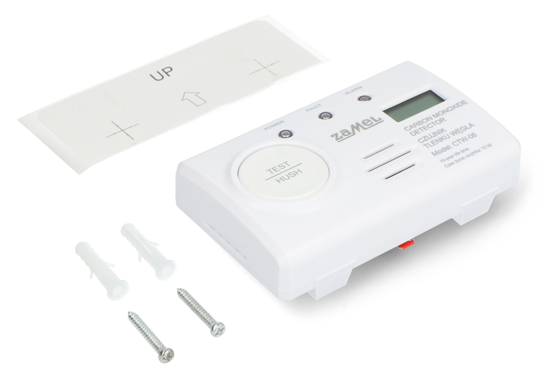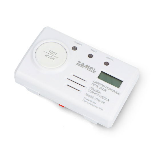Der Zamel CTW-06 Kohlenmonoxidmelder ist eine praktische Lösung, um die Sicherheit der Haushaltsmitglieder vor den Auswirkungen einer Kohlenmonoxidvergiftung zu erhöhen. Das Gerät verwendet einen elektrochemischen Sensor mit einer Lebensdauer von 10 Jahren und wird von einer eingebauten, nicht austauschbaren 3-V-Lithiumbatterie gespeist, so dass während seiner gesamten Lebensdauer kein regelmäßiger Batteriewechsel erforderlich ist. Wenn eine gefährliche Kohlenmonoxidkonzentration festgestellt wird, löst der Melder einen akustischen Alarm mit einer Lautstärke von ca. 90 dB und eine optische Anzeige aus. Auf dem eingebauten LCD-Display werden die aktuelle Kohlenmonoxidkonzentration, der Batteriestatus, Diagnosemeldungen und die Temperatur angezeigt, so dass die Situation leicht zu beurteilen ist. Ein Selbstdiagnosesystem überwacht den korrekten Betrieb des Sensors und informiert über Schäden oder das Ende der Lebensdauer.